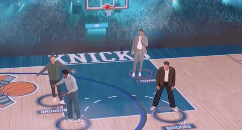 The four former NBA stars played the roles of New York Knicks players OG Anunoby (Haslem), Jalen Brunson (Nash), Mikal Bridges (Griffin), and Karl-Anthony Towns (Nowitzki) ahead of New York’s game against the Boston Celtics on Prime Video.