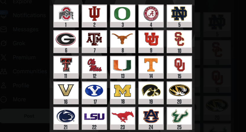 Let’s start with college football. The ESPN FPI ranks Ohio State No. 1 and Indiana No. 2, which is where most agree. Oregon is a surprising #3, but if the FPI is rating the Big Ten that strongly, maybe it makes sense from an analytical point of view since Oregon’s only loss was to the team ranked directly above them.