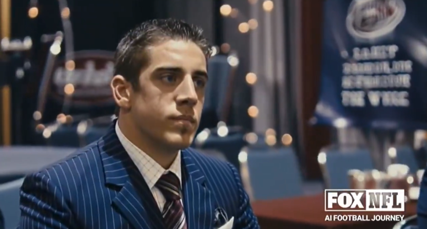 During the first half of the game, the Fox broadcast showed quarterback Aaron Rodgers’ “AI Football Journey,” seemingly an AI-generated video montage of the key moments in Rodgers’ football career.